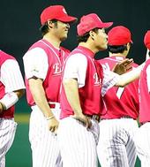 2005.08.15 21: 16동료들과 하이파이브를 나누는 조성민