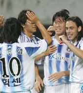 2005.08.24 21: 03선제골을 넣고 좋아하는 김은중과 동료들