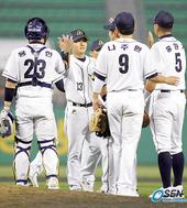 2005.08.30 22: 10승리를 자축하는 두산 나인들