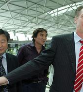 2005.09.08 12: 33출국장으로 걸어가며 악수를 나누는 본프레레