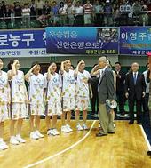 2005.09.16 16: 13해병대 교관단과 경례를 주고 받는 신한은행 선수들