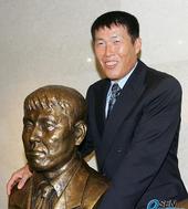 2005.09.21 13: 58자신의 흉상 뒤에 선 명예의 전당 헌액자들