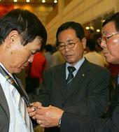 이회택 부회장의 메달을 구경하는 관계자들
