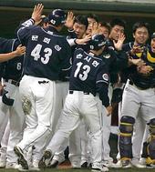 2005.09.22 20: 565-0을 만들고 좋아하는 두산 선수들