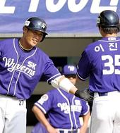 2005.09.25 17: 09이틀 연속 홈런을 날린 이진영과 이호준