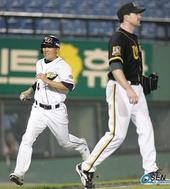 1루에서 여유있게 홈인하는 전상렬