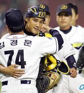 2005.09.28 22: 00포옹하는 김경문 감독과 홍성흔