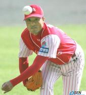 2005.10.02 14: 42한화 선발 투수 송진우의 투구
