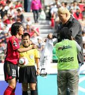 2005.10.02 15: 33박주영의 사인볼을 받고 티셔츠를 주는 최홍만