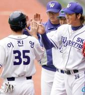 2005.10.03 16: 00홈인한 이진영을 환영하는 SK 선수들