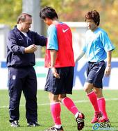 2005.10.08 12: 44공을 패스해 주는 홍명보 코치