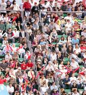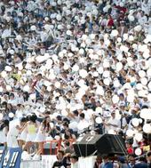 2005.10.09 16: 30두산 응원석의 흰색 풍선과 티셔츠의 물결