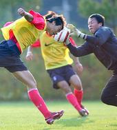 2005.10.10 18: 22훈련 후 '게임'을 벌이는 홍명보 코치와 안정환