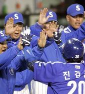 2005.10.18 21: 25양준혁을 뜨겁게 환영하는 삼성 선수들