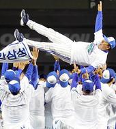 2005.10.19 22: 29모자를 던지며 기뻐하는 삼성 선수들