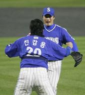 2005.10.19 22: 38'우승의 포옹'을 위해 달려오는 오승환