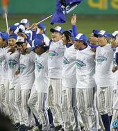 2005.10.19 22: 35깃발을 들고 운동장을 도는 삼성 선수들
