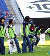 2005.10.23 16: 06하프타임 때 잔디를 보수하는 자원봉사 학생들