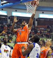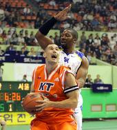 2005.10.23 16: 42골밑슛을 노리는 KTF 대체 용병 샐리어스