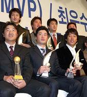 2005.10.31 14: 56기념촬영을 하는 2005 프로야구 부문별 수상자들