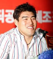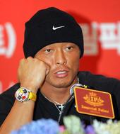 2005.11.03 18: 40손을 볼에 대고 질문에 답하는 추성훈