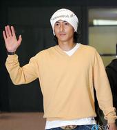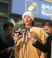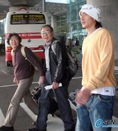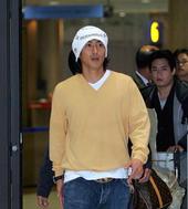 2005.11.07 17: 18'비니 모자'를 쓰고 입국장을 나오는 안정환