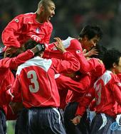 2005.11.16 20: 38선제골을 뽑은 최진철을 둘러싸고 기뻐하는 태극전사들