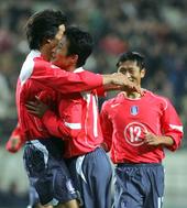 2005.11.16 20: 25선제골을 넣고 환호하는 태극전사들
