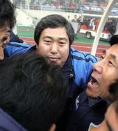 2005.11.27 16: 48승리의 기쁨을 나누는 현대 코칭스태프