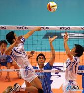 2005.12.03 20: 16블로킹 위로 연타 공격하는 국내 최장신 김세영