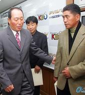 2005.12.05 13: 24기자회견장에 나란히 입장하는 김인식, 김재박 감독