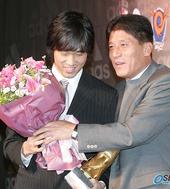 2005.12.07 19: 53박주영에게 꽃다발을 건네는 이장수 감독