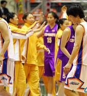 2005.12.20 17: 59고개를 숙인 우리은행 이경은과 김보미