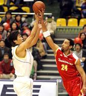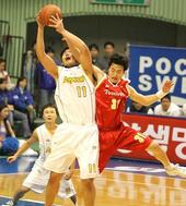 서장훈의 슛을 블록하는 아이라 클라크