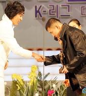 2005.12.28 17: 09박주영에게 시상하는 '말아톤'의 배형진