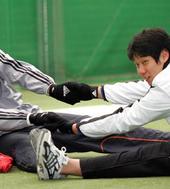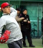 2005.12.28 15: 43'부드럽게', 캐치볼로 몸을 푸는 유제국
