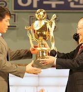 2005.12.28 15: 44[사지]컵대회 우승 트로피를 받는 수원 삼성 차범근 감독