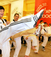 2006.01.05 16: 53'이색 시무식'에 등장한 태권도 금메달리스트 문대성의 시원한 발차기