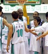 2006.01.11 20: 55승리의 기쁨을 나누는 원주 동부 선수들