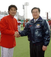 2006.01.12 11: 54꽃다발을 주고 받는 前現 KBO 총재
