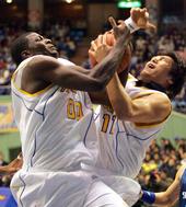 2006.01.14 16: 06같은 편인 줄 모른 채 리바운드를 다투는 서장훈과 오예데지