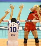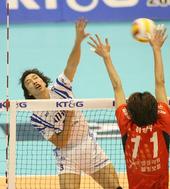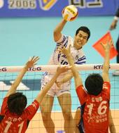 2006.01.28 16: 48이경수에게 막히는 장병철의 오른쪽 오픈 강타