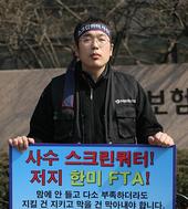 2006.02.20 19: 06미 대사관 앞에서 1인시위 하는 전국영화산업노동조합 최진욱 위원장