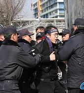 경찰과 몸싸움 하는 전국영화산업노동조합 최진욱 위원장