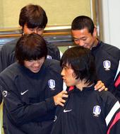 2006.02.28 17: 11기자회견서 손을 한 데 모은 한국 대표팀