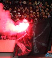 2006.03.01 23: 40SK라고 쓰인 대형 천을 불태우는 팬들