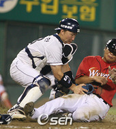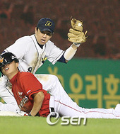 2006.08.09 21: 58고참 안경현의 '허슬 플레이'