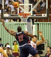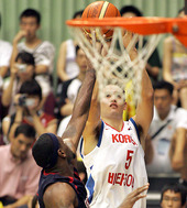 2006.08.15 16: 52몸을 비틀며 골밑슛하는 김민수