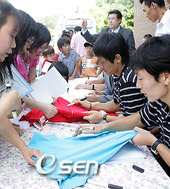 2006.08.19 16: 49보육원생에게 사인해 주는 김남일