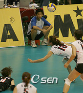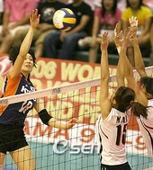 2006.08.26 20: 31더블 블로킹 앞에서 강타를 날리는 한송이